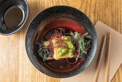 Tempura tofu in delicately flavoured mushroom dashi-soup